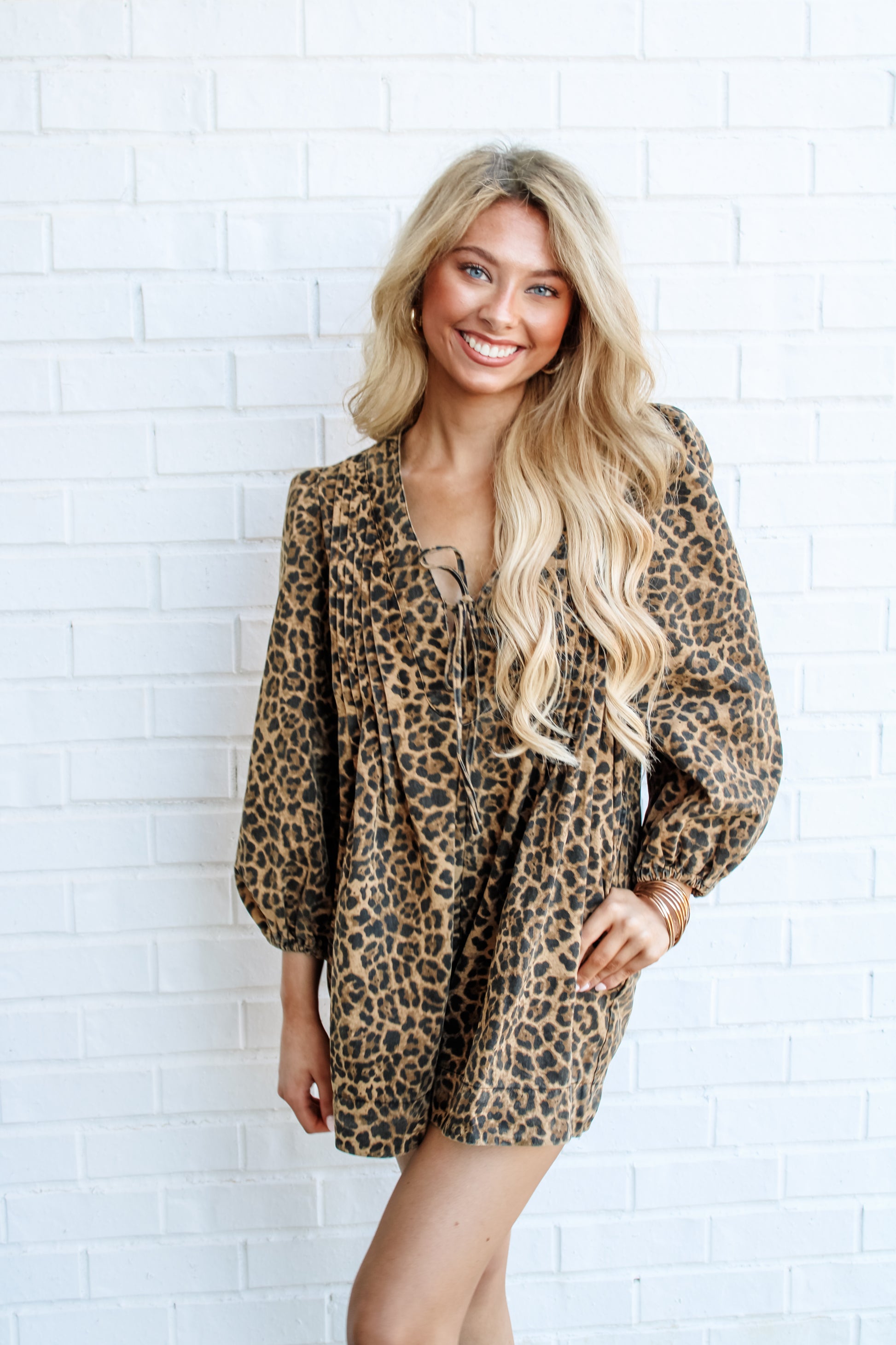 - The season’s perfect romper - featuring a deep v-neck with tie, pleated detailing, 3/4 sleeve length, and side pockets.